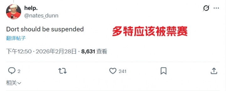 多特壞動作遭驅逐引眾怒!美網(wǎng)友:趕緊讓他滾出NBA!還裝無辜!