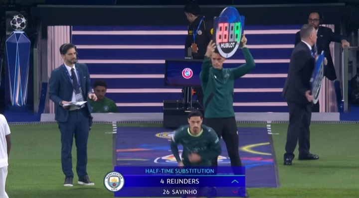 皇馬、曼城均半場(chǎng)換人:賴因德斯換薩維尼奧,弗蘭·加西亞換門迪