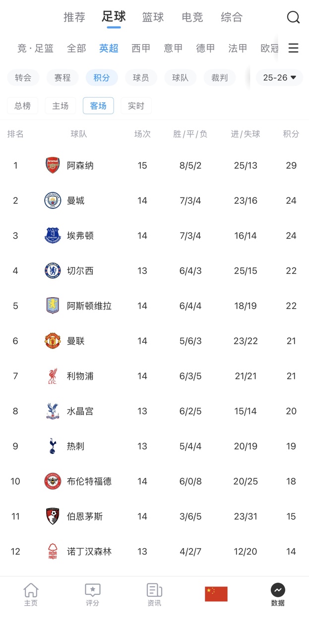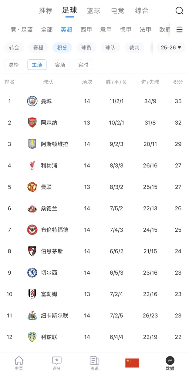 賽后復(fù)盤:比賽結(jié)束后,切換 “總榜 / 主場(chǎng) / 客場(chǎng)”,分析球隊(duì)本賽季整體、主場(chǎng)、客場(chǎng)的戰(zhàn)績(jī)格局都能一目了然。