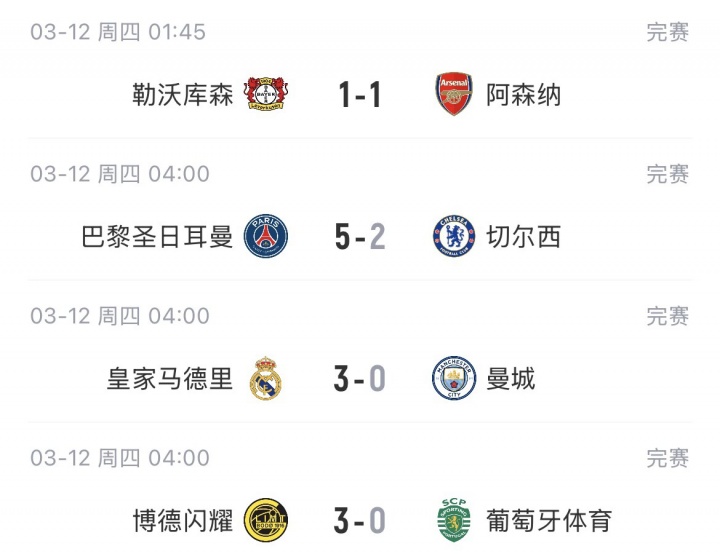 直播吧03月12日訊 歐冠1/8決賽首回合比賽結(jié)束,種子隊只有拜仁客場取勝。