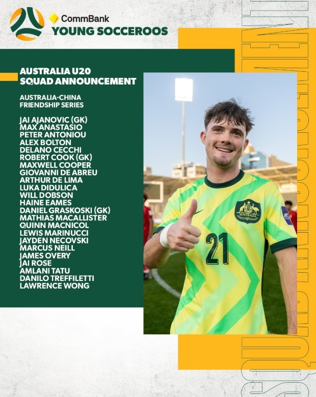 直播吧3月12日訊 澳大利亞U20隊(duì)公布3月對(duì)陣中國U20隊(duì)熱身賽比賽名單,華裔球員黃振文在列。根據(jù)賽程,澳大利亞U20隊(duì)與中國U20隊(duì)兩場(chǎng)熱身賽將于3月28日15:30以及3月31日19:30在浙江義烏進(jìn)行。