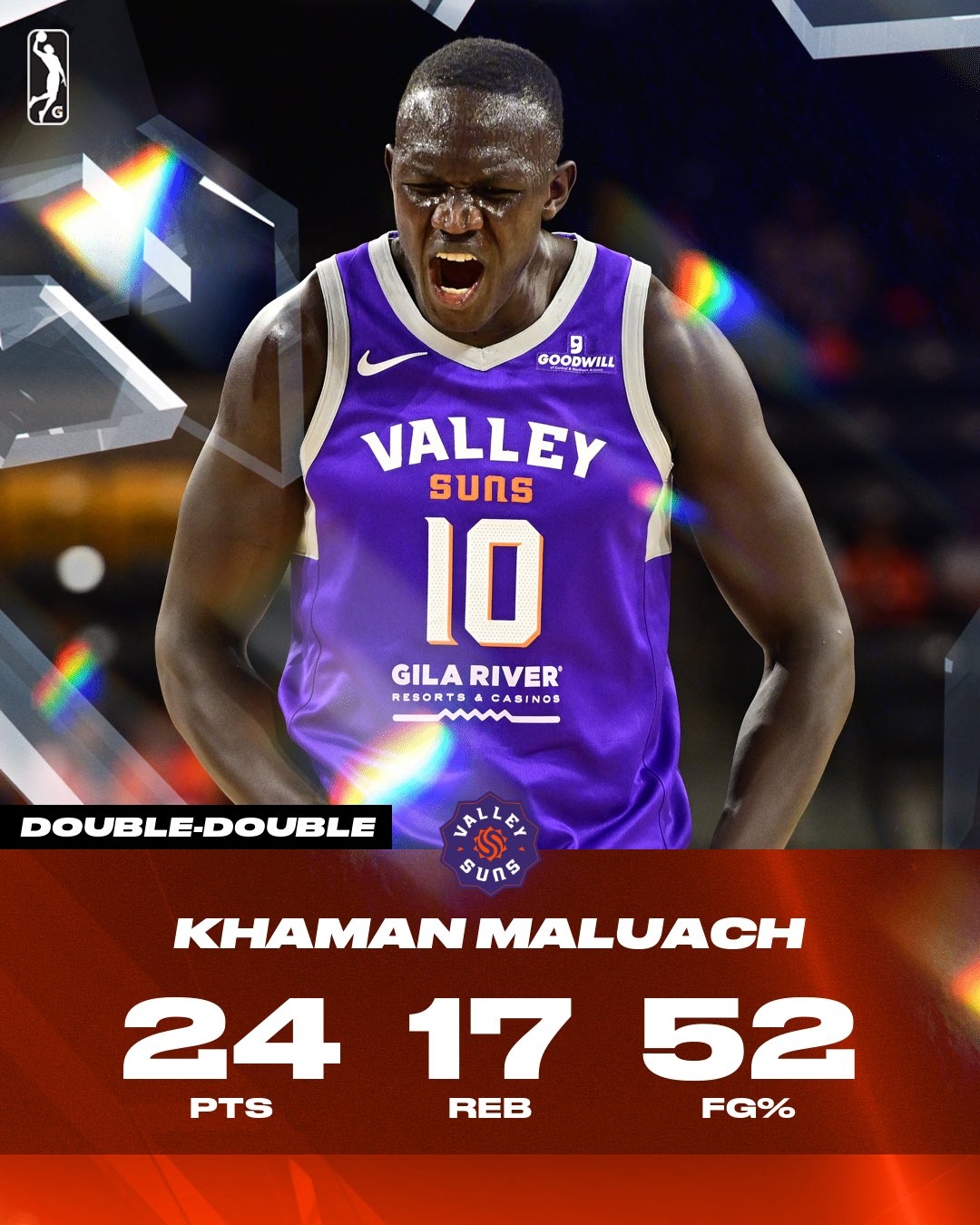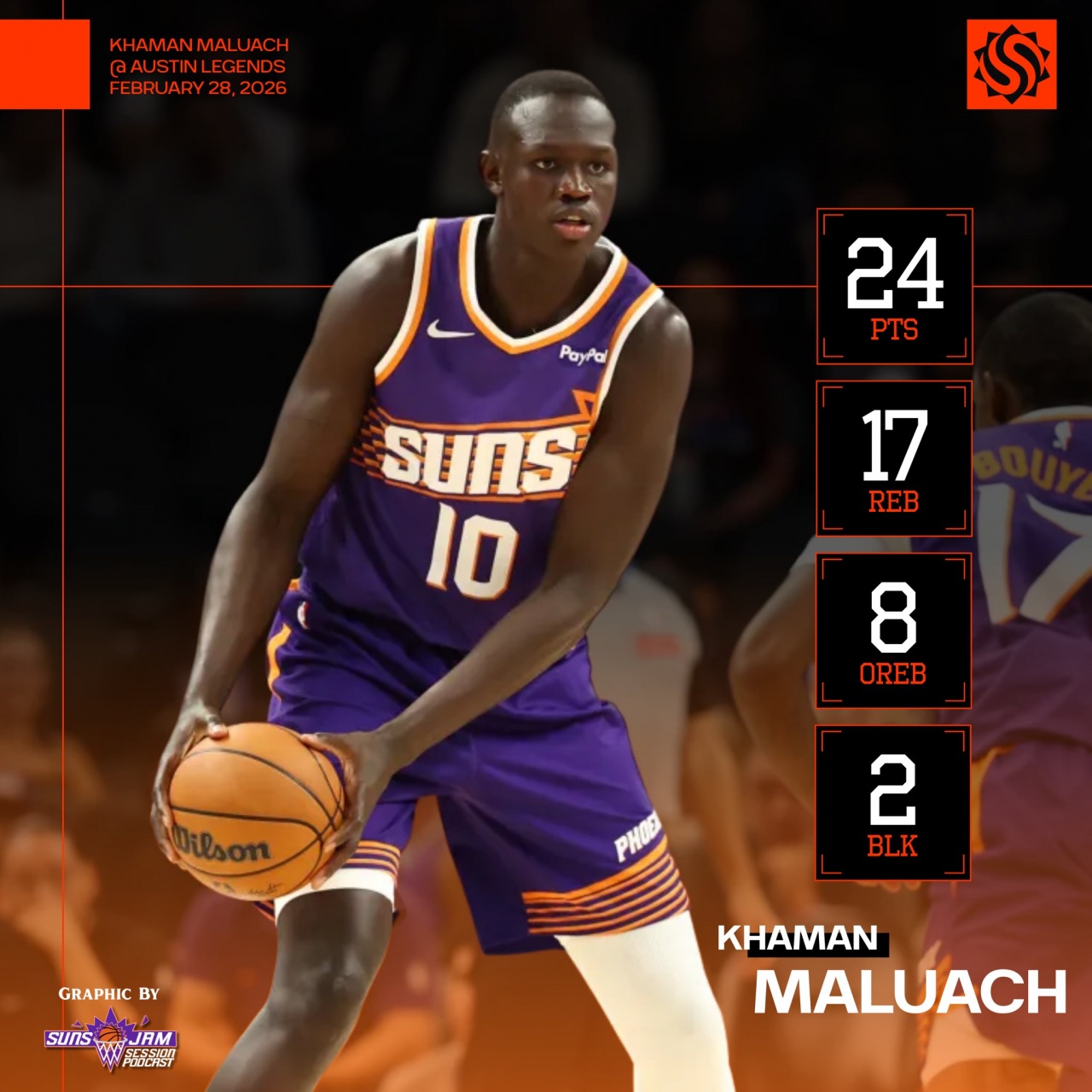 此役,太陽(yáng)10號(hào)秀、中鋒馬盧阿奇表現(xiàn)不俗,2米16的他甚至還秀起了砸籃板接球暴扣的好戲。