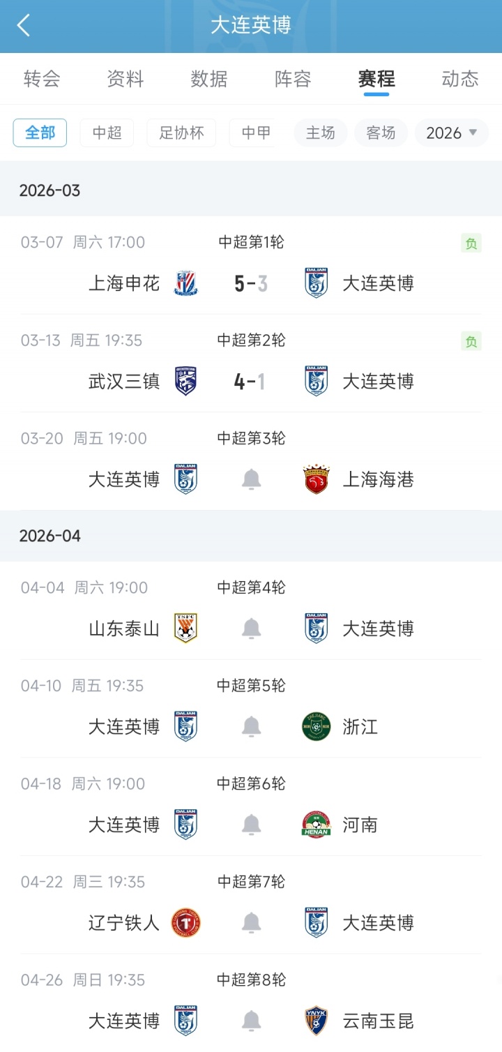 而大連英博的后續(xù)賽程也不容樂觀,接下來兩輪,大連英博要先后對陣上海海港和山東泰山。