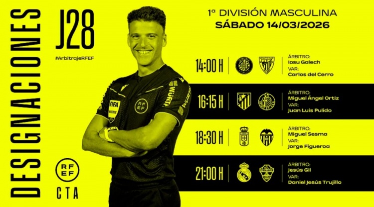 直播吧3月13日訊 西甲官方公布聯(lián)賽第28輪在當(dāng)?shù)貢r(shí)間3月14日進(jìn)行的四場比賽執(zhí)法裁判