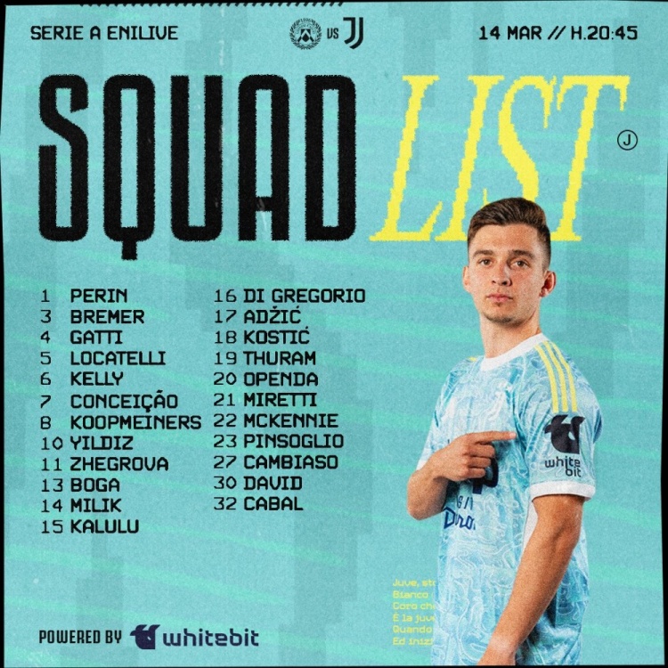 直播吧3月14日訊 北京時(shí)間明天凌晨,尤文將在意甲第29輪比賽中客場(chǎng)對(duì)陣烏迪內(nèi)斯,尤文公布了此役的球員名單。米利克回歸,弗拉霍維奇繼續(xù)缺席。