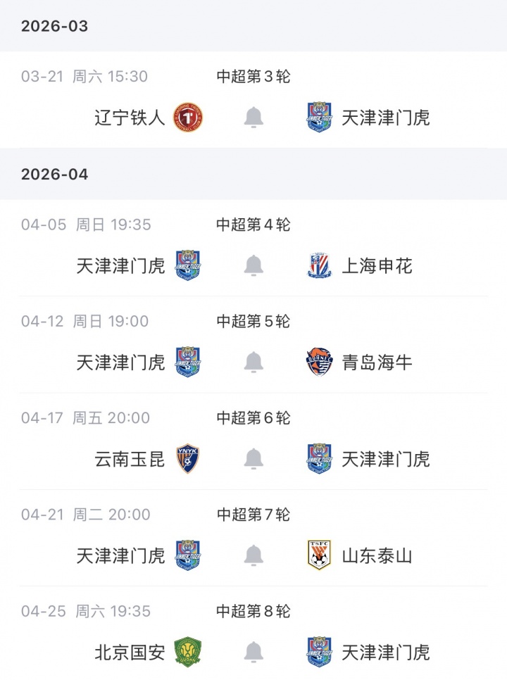 津門虎是本賽季被扣分最多的球隊(duì),以負(fù)10分開始本賽季的中超征程,他們兩輪1平1負(fù)未能取勝,目前負(fù)9分墊底,在四月份,他們還將對(duì)陣申花、泰山、國(guó)安等強(qiáng)隊(duì)。