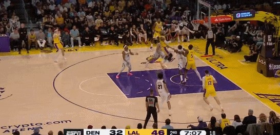 一馬平川!詹姆斯反擊接球 中路突進(jìn)起飛拉桿上籃輕松得手