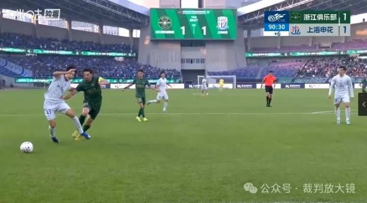 因?yàn)榘凑崭蕵?shù)然對(duì)佯裝的容忍度,那么在比賽最后階段,浙江28號(hào)隊(duì)員突破時(shí)防守隊(duì)員伸腳,但是慢放顯示防守隊(duì)員并沒(méi)有明顯踢到對(duì)方,即使踢到這種力度也不會(huì)被吹罰犯規(guī),對(duì)方也是被夸大了被侵犯的力度,那么也應(yīng)該判罰假摔。裁判員不怕錯(cuò)判、漏判,就怕一場(chǎng)的尺度不一。