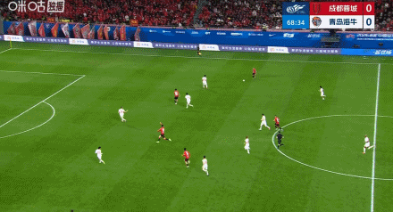 比賽第69分鐘,王子銘右路傳中,韓鵬飛小禁區(qū)內(nèi)面對超級空門,打門沒能踢到皮球。場上比分成都蓉城0-0青島海牛。