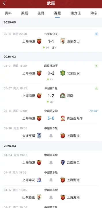 武磊上一次破門是2025年5月17日上海海港對(duì)陣山東泰山的比賽。