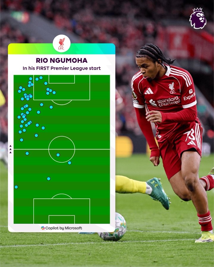 第一次在英超首發(fā)!英超官方曬利物浦小將恩古莫哈熱區(qū)圖