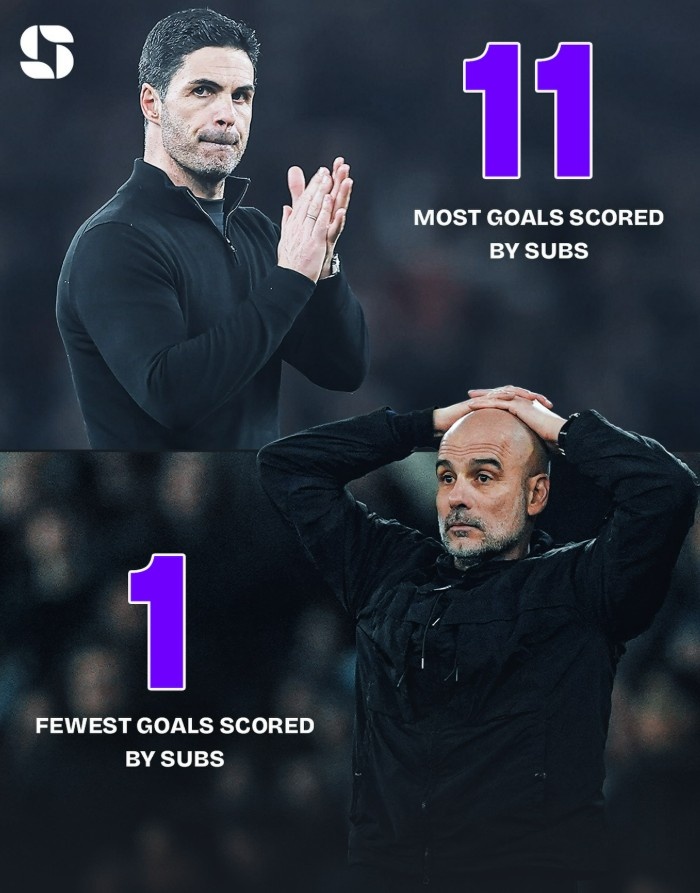 據(jù)統(tǒng)計(jì),阿森納本賽季在英超由替補(bǔ)球員已經(jīng)打進(jìn)11粒進(jìn)球,此數(shù)據(jù)為所有球隊(duì)最多,而曼城則只利用替補(bǔ)球員打進(jìn)1球,為所有球隊(duì)最少。
