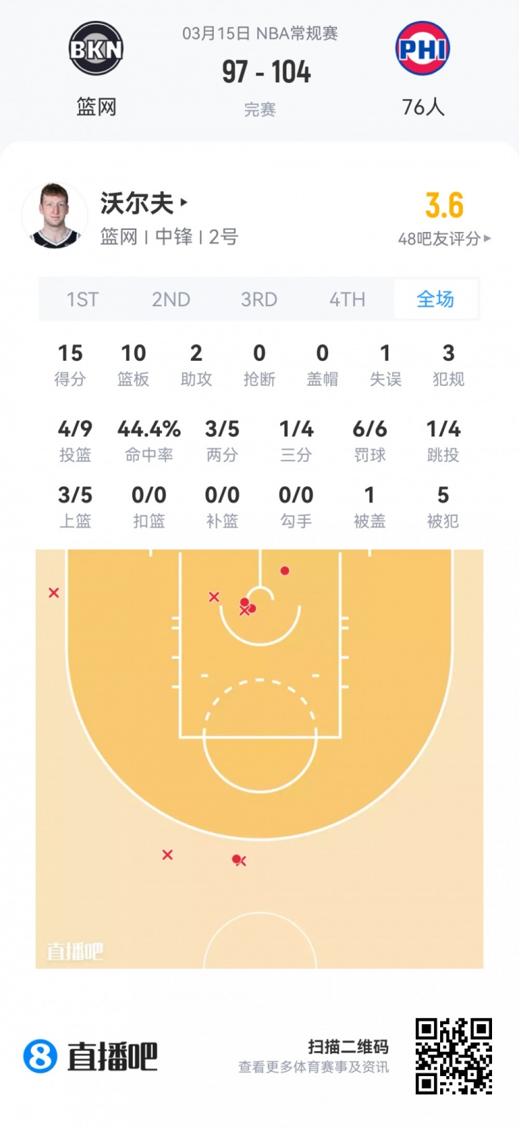 籃網(wǎng)首輪27號(hào)秀沃爾夫 登場(chǎng)26.4分鐘