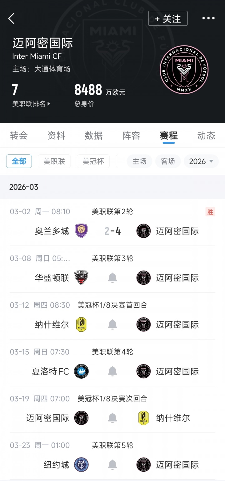 3月份接下來的賽程,邁阿密將對陣華盛頓聯(lián)、納什維爾(2場)、夏洛特FC以及紐約城。梅西突破職業(yè)生涯900球,很可能在本月實現(xiàn)。
