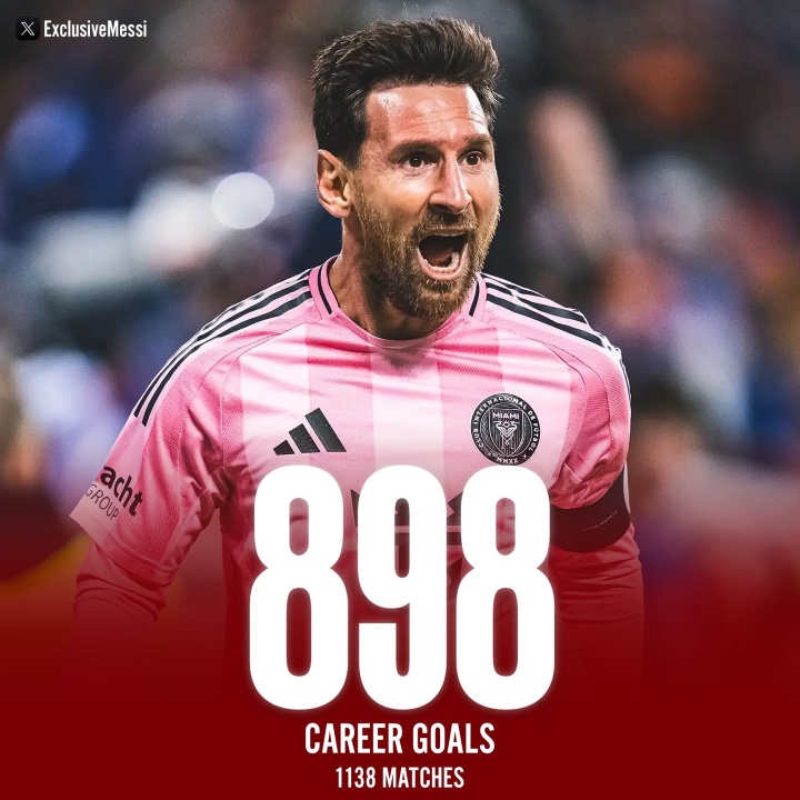 直播吧03月02日訊 美職聯(lián)第2輪,邁阿密國際4-2逆轉(zhuǎn)奧蘭多城。梅西雙響職業(yè)生涯已經(jīng)打入898球。