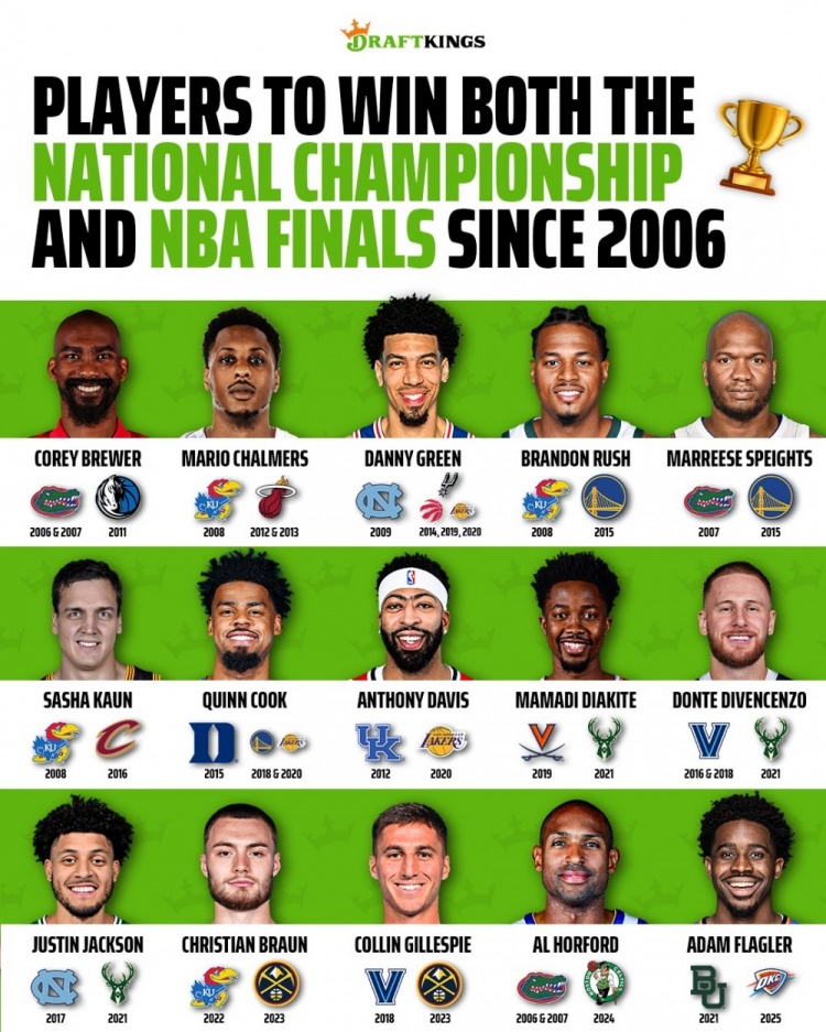只有15人!2006年至今拿到過NCAA冠軍和NBA總冠軍的球員