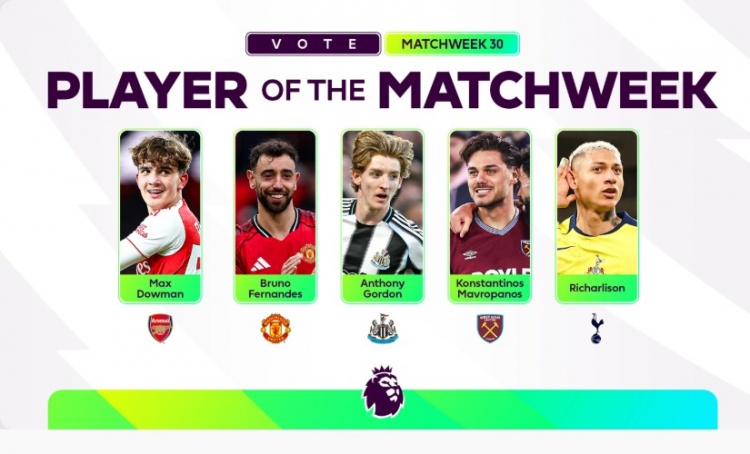 直播吧3月17日訊 英超官方公布了本輪的最佳候選名單,由B費、道曼領銜。