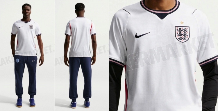 直播吧3月18日訊 專業(yè)裝備網(wǎng)站Footy Headlines報(bào)道英格蘭隊(duì)征戰(zhàn)2026年美加墨世界杯的主場球衣諜照。