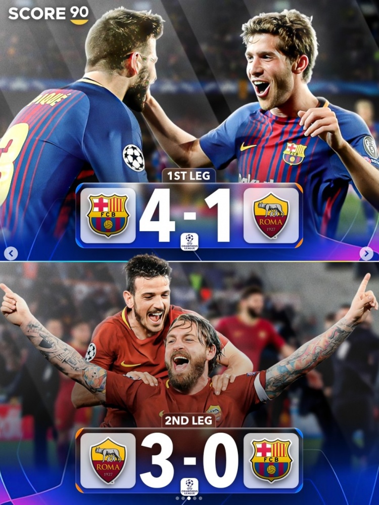 首回合巴薩4-1羅馬,次回合羅馬3-0巴薩