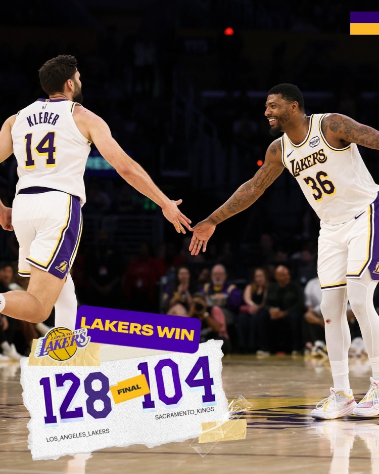直播吧3月2日訊 NBA常規(guī)賽,湖人128-104大勝國王。