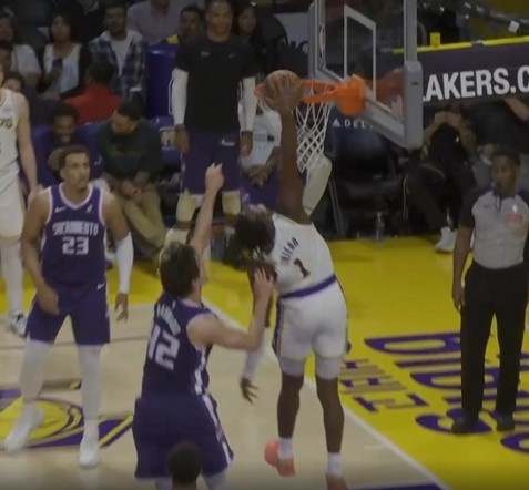 真生猛啊!湖人新秀阿杜·蒂耶羅突破單臂暴扣打成2+1