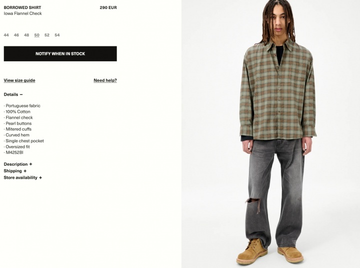 這件爆紅的瓜迪奧拉同款襯衫,在購物網(wǎng)站上的售價為290歐元。這款襯衫來自Our Legacy品牌2024秋冬系列,商品詳情頁中這樣介紹道: