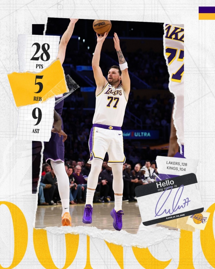 賽后,湖人官方發(fā)布東契奇本場數(shù)據(jù)海報,并寫道:“盧卡的輕量工作?!?/p>