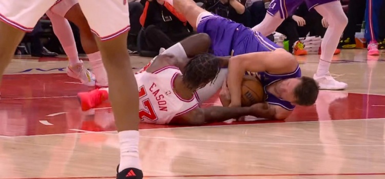 拼搶激烈!東契奇與伊森倒地爭球都不肯撒手 一片混戰(zhàn)