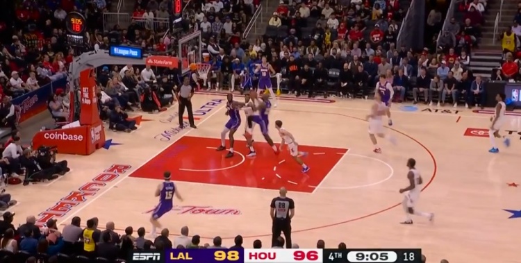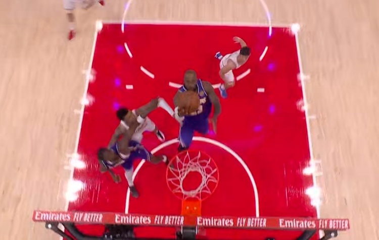 一馬平川!詹姆斯反擊接球 中路突擊大三步上籃得手