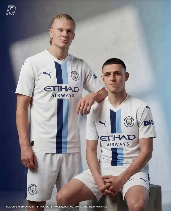 有設(shè)計師已根據(jù)這一熱門設(shè)計,PS出了曼城球員身著該球衣的上身效果圖,提前展現(xiàn)了球衣的賽場視覺效果。
