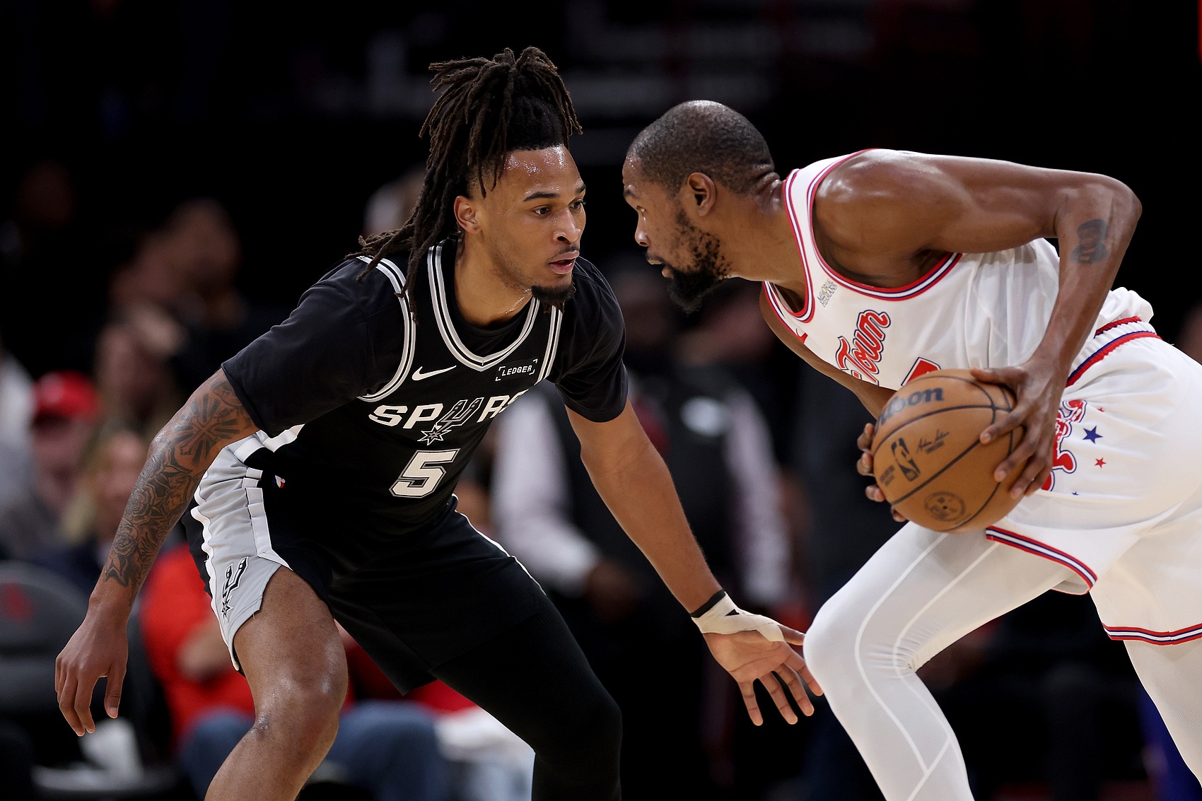 杜蘭特在籃網(wǎng)距離榮耀只差一個(gè)大腳趾,在太陽被掃地出門,但如今在火箭又回到了具有競(jìng)爭(zhēng)力的行列,在這里,無論境遇如何,火箭都指望他能始終如一地展現(xiàn)出超級(jí)巨星的本色。但老將球星能達(dá)到的上限,往往取決于隊(duì)內(nèi)最優(yōu)秀的年輕球星能帶他們走多遠(yuǎn)——想想卡里姆·阿卜杜勒·賈巴爾與“魔術(shù)師”埃爾文·約翰遜,蒂姆·鄧肯與科懷·倫納德,或者勒布朗·詹姆斯與安東尼·戴維斯。此外,火箭的一名或多名年輕球員必須完成質(zhì)的飛躍,杜蘭特才能體驗(yàn)到他在雷霆或勇士取得的那種團(tuán)隊(duì)成功。