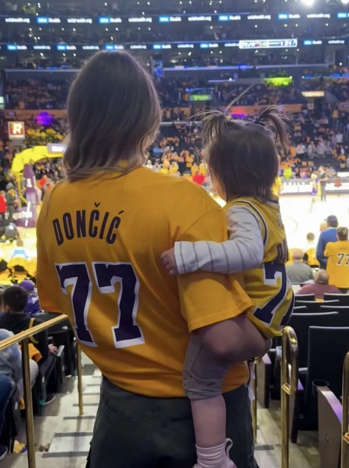 2023年7月7日,他特意選擇這個(gè)與自己球衣號(hào)碼"77"相關(guān)的日子,在斯洛文尼亞風(fēng)景如畫的布萊德湖向她求婚。湖水如鏡,倒映著兩人的身影,仿佛時(shí)間都愿意為他們停留。同年11月,大女兒加布里埃拉在美國(guó)出生。一切看起來(lái),都是愛情最美好的模樣。