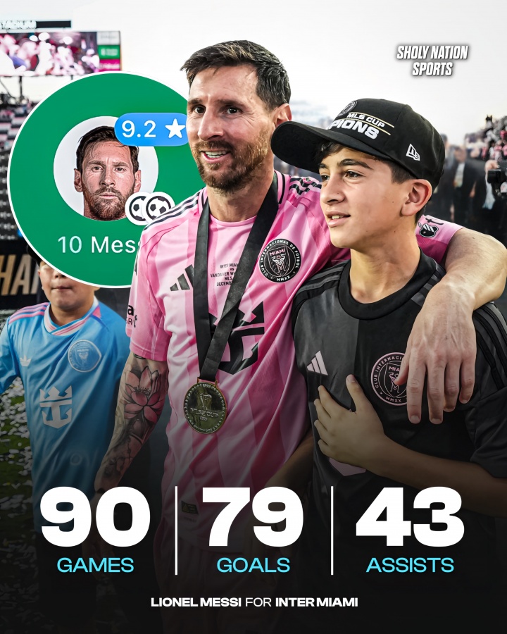 目前梅西在邁阿密國(guó)際90場(chǎng)比賽轟入79球,同時(shí)梅西還有43次助攻。