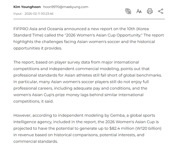此前根據(jù)亞足聯(lián)官方公布的信息,2026年女足亞洲杯的總獎金與2022年持平,仍為180萬美元,且僅分配給進入前四名的球隊,包括冠軍100萬美元、亞軍50萬美元、四強15萬美元