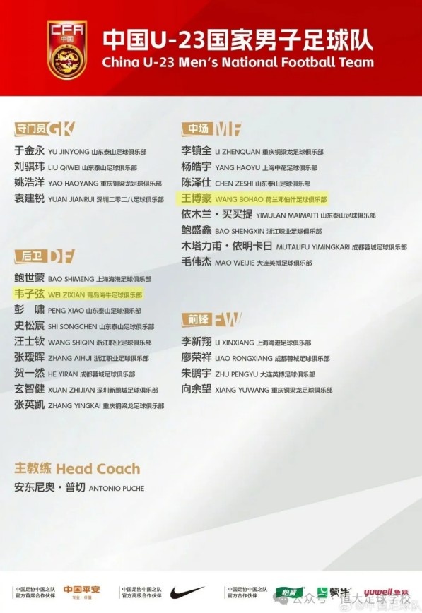 韋子弦、王博豪入選U23集訓名單。為備戰(zhàn)2026年名古屋亞運會,隊伍將于3月22日至4月1日赴陜西省西安市組織集訓并參加西安國際足球錦標賽。