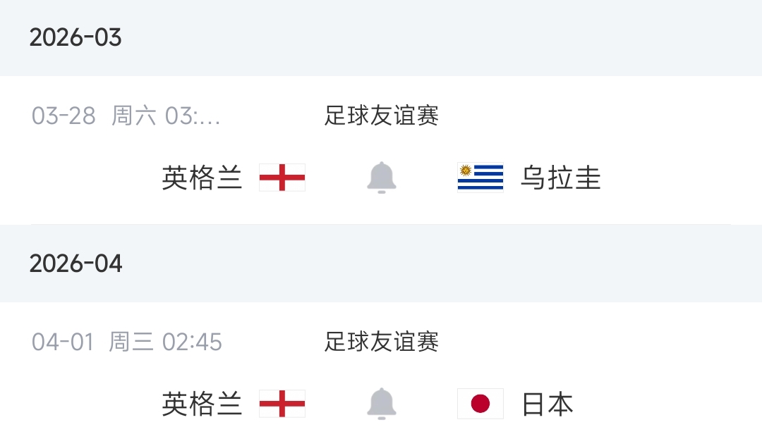 英格蘭本月底將坐鎮(zhèn)溫布利球場進行兩場熱身賽,分別是北京時間3月28日凌晨3:45對陣烏拉圭、4月1日凌晨2:45對陣日本。