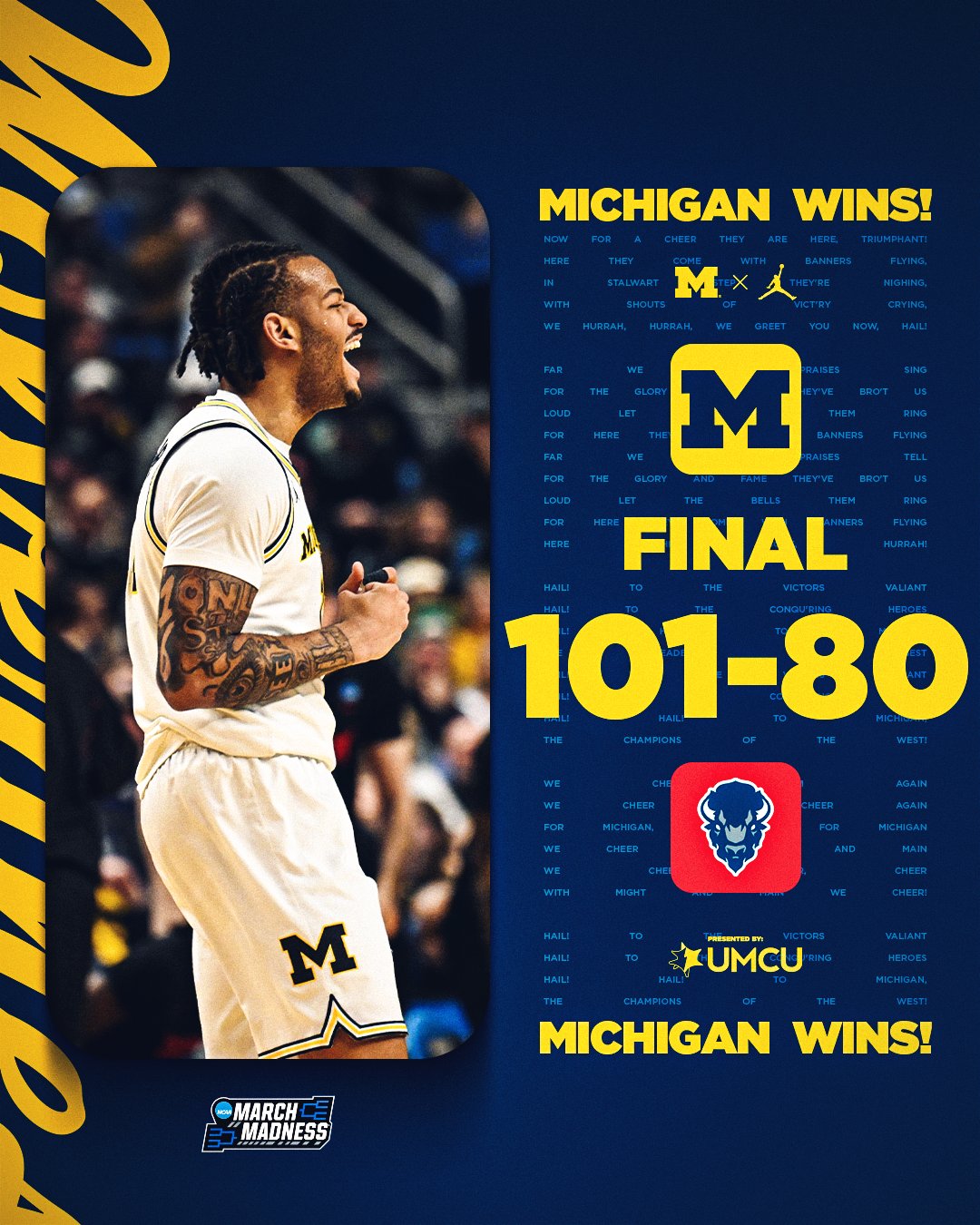 面對(duì)從最初四強(qiáng)賽突圍的霍華德大學(xué),中西區(qū)頭號(hào)種子密歇根大學(xué)下半場(chǎng)發(fā)力,最終取得一場(chǎng)大勝。
