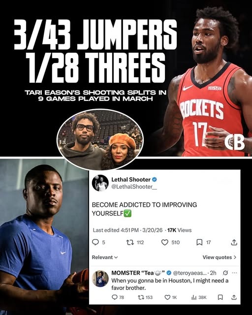 直播吧3月21日訊 據(jù)統(tǒng)計,火箭球員塔里·伊森在3月份的9場比賽中,跳投43中3,三分球更是只有28中1,今日伊森媽媽在社媒發(fā)文請求某知名投籃教練提供幫助。
