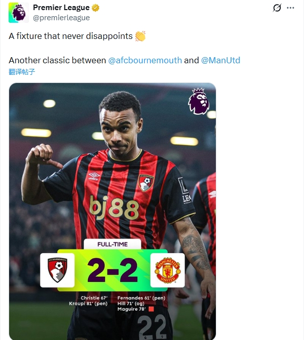 直播吧03月21日訊 英超第31輪,曼聯(lián)2-2戰(zhàn)平伯恩茅斯,裁判判罰引發(fā)爭議。賽后,球迷紛紛在英超社媒下抗議。
