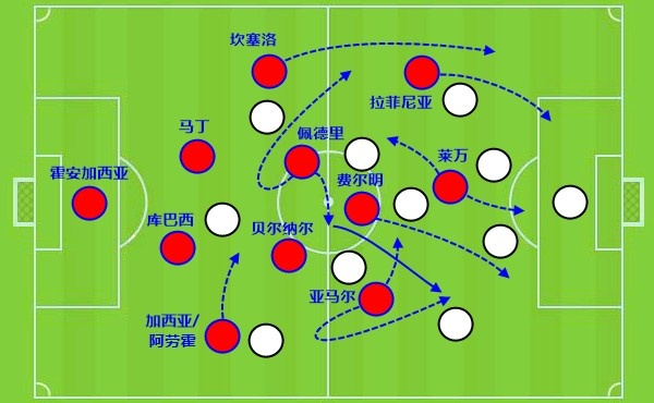 關(guān)鍵點還是因為有了佩德里,通過后者拖后,一來保證傳球和推進的穩(wěn)定性,二來也能做好攻防轉(zhuǎn)換時的選位,這樣一來,貝爾納爾利用自己閱讀比賽和洞察空間的能力適時前插,可以起到不錯的效果。