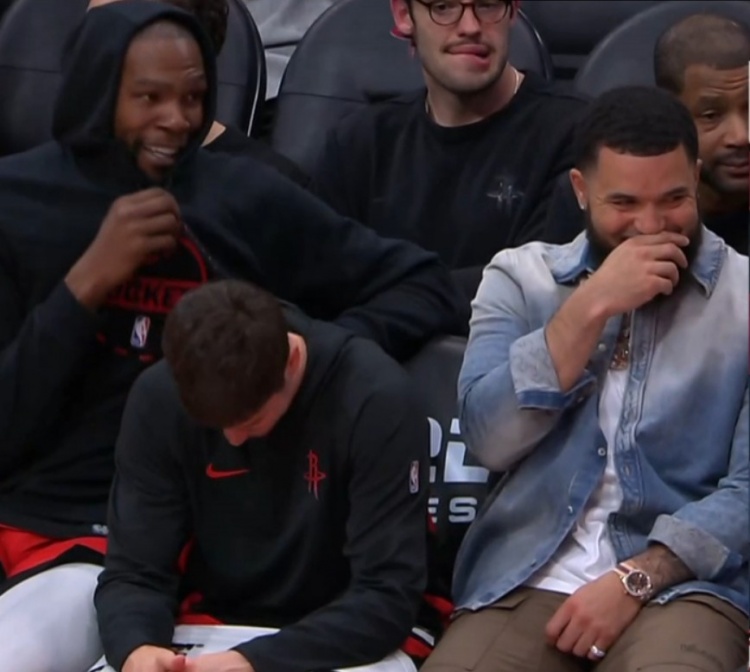GIF-終場前大比分領(lǐng)先KD和范弗里特、小謝有說有笑