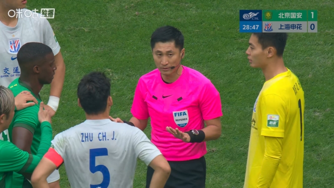 直播吧03月21日訊 中超第3輪,北京國安vs上海申花。比賽第28分鐘,張稀哲前場出球后被撞倒,后續(xù)法比奧也被放倒,主裁判馬寧最初判罰國安任意球,聽取VAR意見后改判越位。