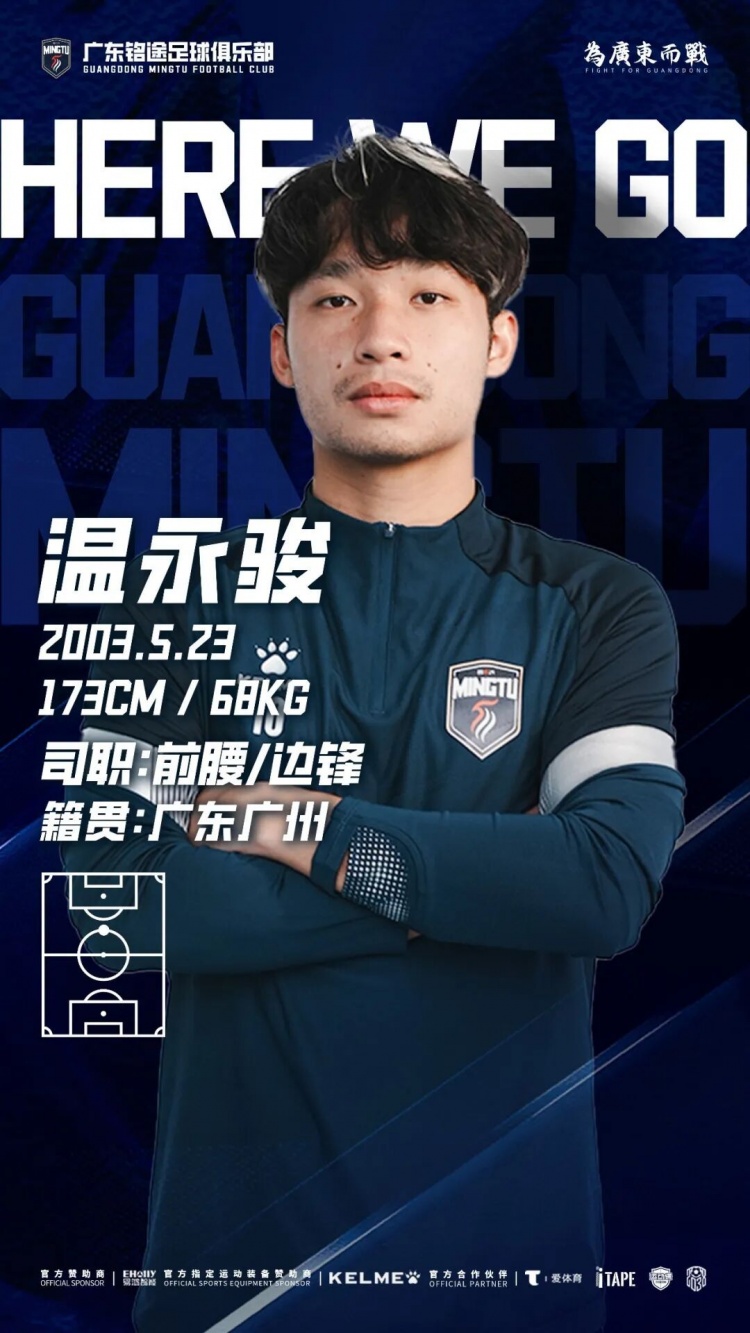 廣東銘途足球俱樂部基于對賽季發(fā)展方向的整體規(guī)劃,并與球員本人充分溝通協(xié)商,雙方達成一致:球員溫永駿即日起正式轉會至廣東銘途足球俱樂部一線隊!