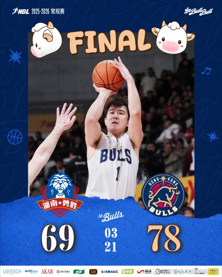 末節(jié)決戰(zhàn),阿諾斯克、龐茲先后命中中距離投籃,瓊斯憑借個人節(jié)奏,頂著三人防守強(qiáng)硬打成2+1。在對手追分的關(guān)鍵時刻,董建連續(xù)命中兩記三分,幫助球隊鎖定勝局。全場比賽結(jié)束,香港金牛78-69戰(zhàn)勝長沙勇勝。
