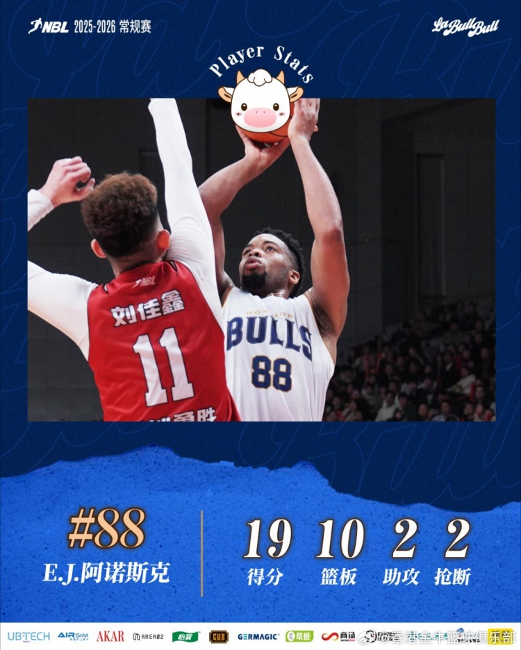 香港金牛客場戰(zhàn)勝長沙勇勝,常規(guī)賽圓滿收官。此役,三外援發(fā)揮出色,得分均上雙。其中,阿諾斯克依舊高水平發(fā)揮,得到19分10籃板的兩雙數(shù)據(jù);
