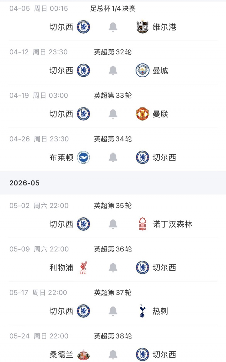 爭(zhēng)五危?切爾西剩余英超對(duì)手:連戰(zhàn)曼城、曼聯(lián),還有利物浦、熱刺
