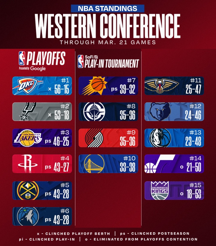 截至今日西部排名