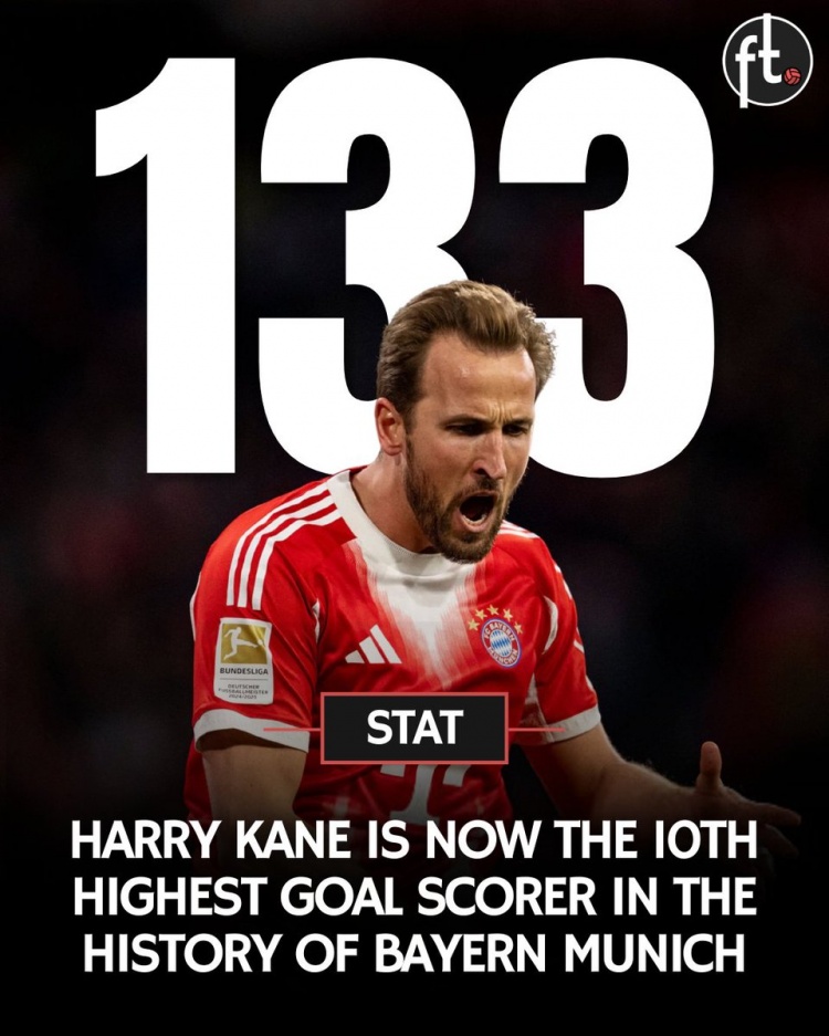 不足三個賽季!凱恩已打進133球,躋身拜仁隊史射手榜前10