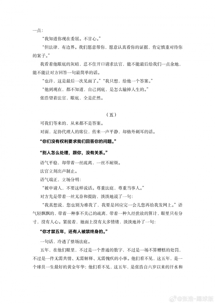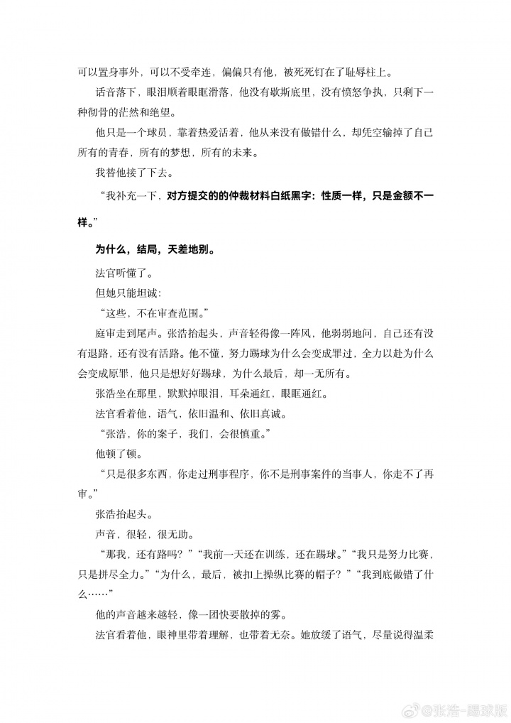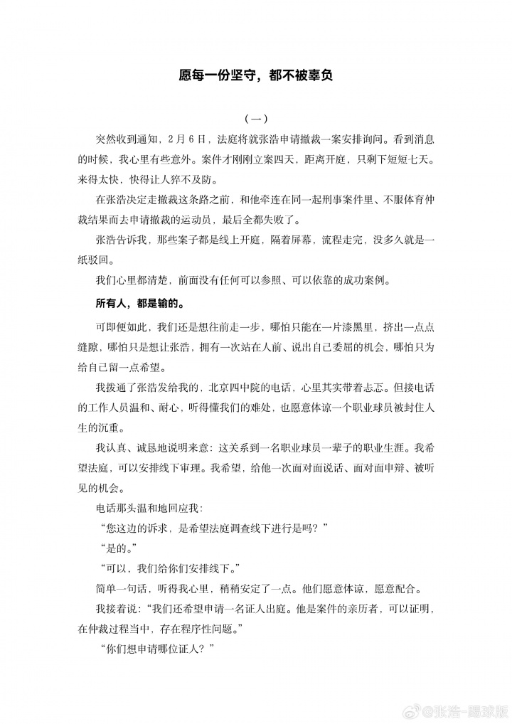 被禁足5年!張浩轉(zhuǎn)發(fā)長文講述申訴始末:愿每一份堅守 都不被辜負(fù)