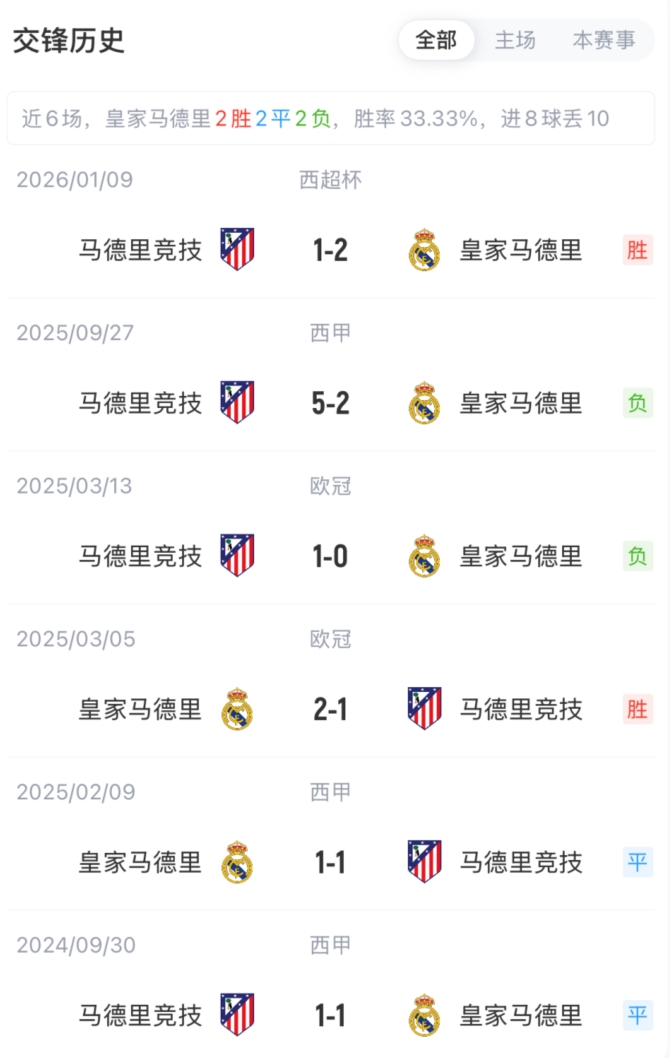 下一篇: 皇馬近6場(chǎng)西甲對(duì)陣馬競(jìng)未嘗勝績(jī),可能遭隊(duì)史首次連續(xù)7場(chǎng)德比不勝